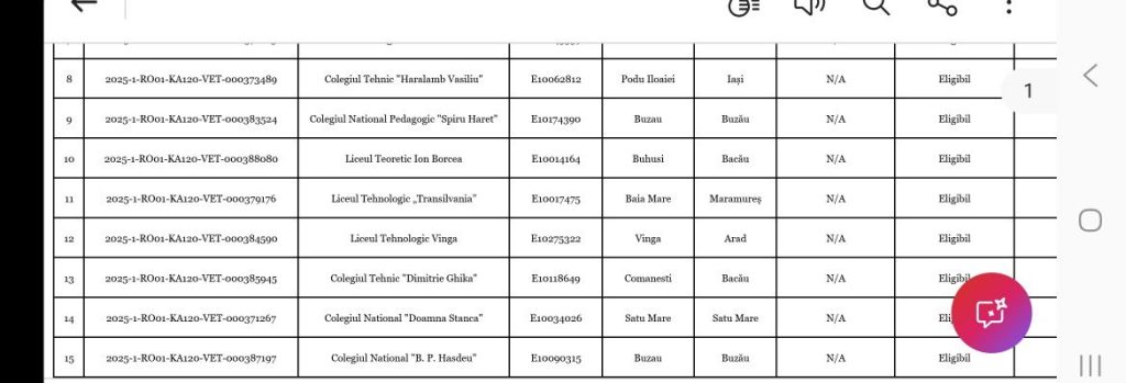 Școala noastră a obținut Acreditarea Erasmus+ în domeniul Formării Profesionale (VET), în cadrul Programului Erasmus+ – Acțiunea Cheie 1 (KA120-VET), Apelul 2025, potrivit listei. ![]()